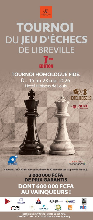 7ème édition du Tournoi d'échecs de Libreville (15 au 23 mai 2026) Venez nombreux assister ou participer!!!